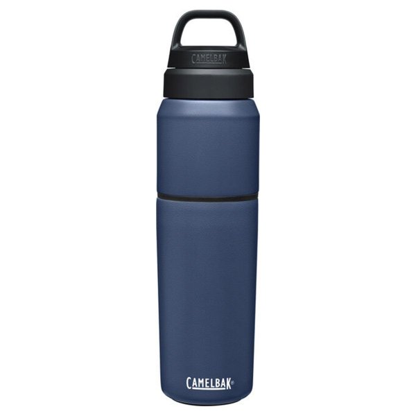 A Garrafa térmica Multibev 2 em 1 650ml da Camelbak é acessório que possui isolamento térmico a vácuo, garantindo a temperatura do líquido por mais tempo, sendo capaz de manter o líquido frio por até 12h e quente por até 4h. A garrafa é 2 em 1, pois tem integrada ao seu corpo um copo térmico com tampa de silicone, encaixado na garrafa vai um copo também com isolamento térmico, e na sua tampa tem acoplada uma tampa de silicone para o copo. O acessório possui gancho na tampa garante conforto ao carregar a garrafa com os dedos e também é útil para prender em algum ponto da mochila, com um mosquetão.