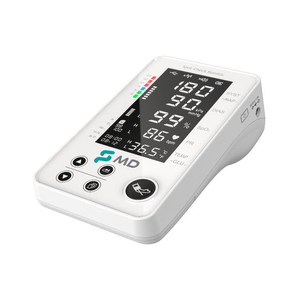 * Design: Com peso aproximadamente 1,2 kg e um formato que cabe facilmente na palma da mão, o SpotCheck da MD é ideal para aplicações de telemedicina e oferece portabilidade sem comprometer a precisão;