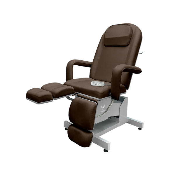 A Poltrona Elétrica para Podologia da Salus Brasil é um produto desenvolvido para aumentar o padrão de ergonomia e eficiência nos atendimentos de podologia, onde une conforto, tecnologia e sofisticação em um único produto. O produto conta com 4 motores elétricos e ajustes independentes nas perneiras, oferece uma experiência profissional muito mais ágil, precisa e confortável para o cliente e a podóloga.
