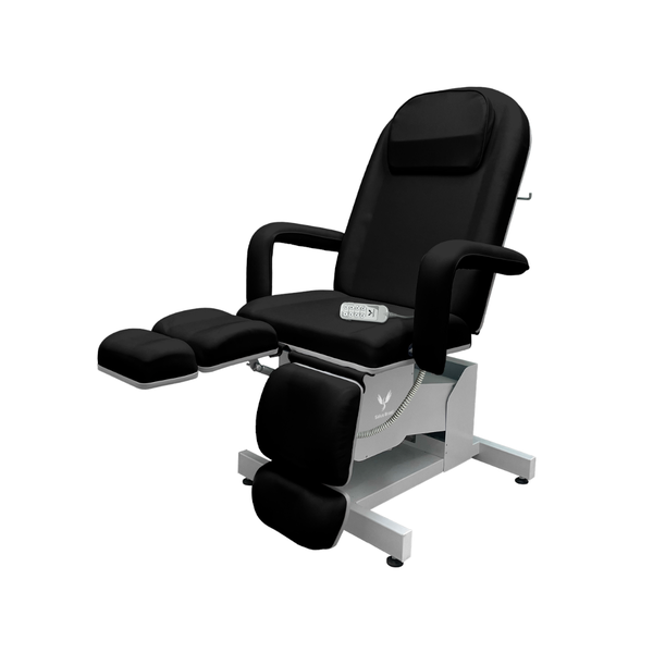 A Poltrona Elétrica para Podologia da Salus Brasil é um produto desenvolvido para aumentar o padrão de ergonomia e eficiência nos atendimentos de podologia, onde une conforto, tecnologia e sofisticação em um único produto. O produto conta com 4 motores elétricos e ajustes independentes nas perneiras, oferece uma experiência profissional muito mais ágil, precisa e confortável para o cliente e a podóloga.