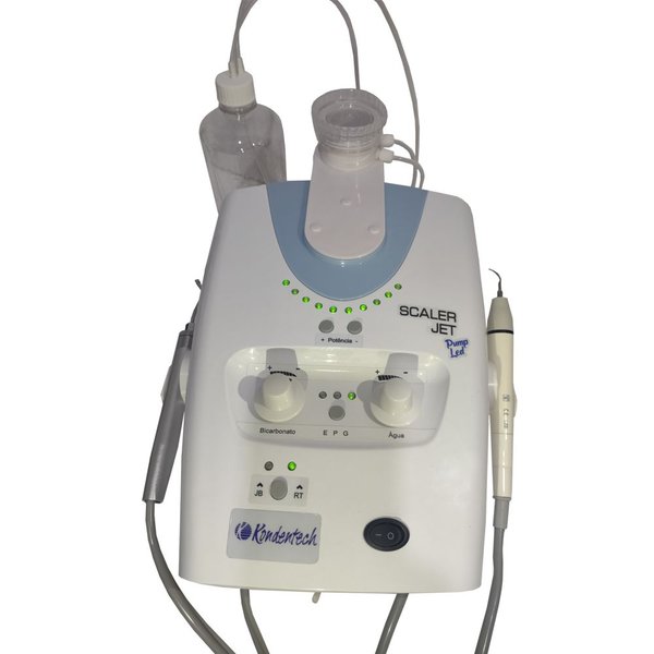 O Ultrassom e Jato de Bicarbonato Scaler Jet Pump Led da Kondentech é um equipamento moderno, desenvolvido para a realização de profilaxia em clínicas e consultórios odontológicos. O seu sistema proporciona fácil manuseio para a remoção de tártaro e jateamento com bicarbonato de sódio.